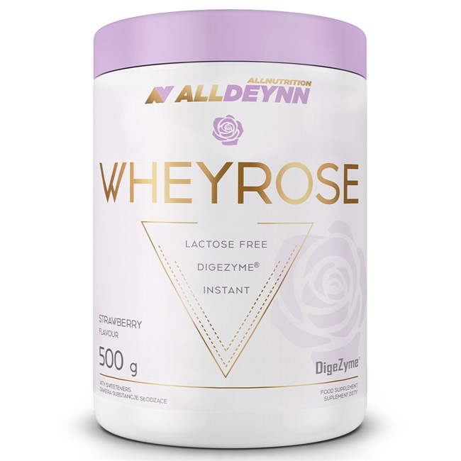ALLDEYNN WHEYROSE to pełnowartościowe białko do picia, z dodatkiem enzymów trawiennych brandowej formuły Digezyme®. Odżywka białkowa opiera się na Whey Protein Concentrate - koncentracie białka serwatki bez laktozy.