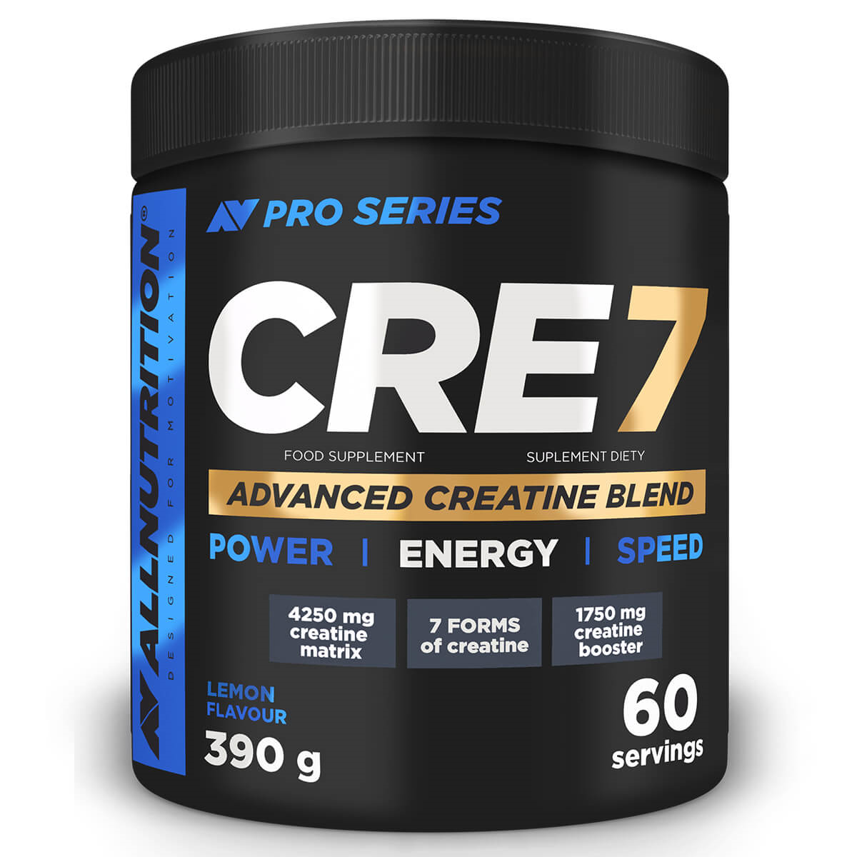 ALLNUTRITION CRE7 to zaawansowany blend siedmiu form kreatyny wzbogacony o taurynę, cytrulinę oraz magnez. W porcji produktu znajduje się aż 2800,5 mg kreatyny, 333 mg cytruliny oraz 500 mg tauryny!