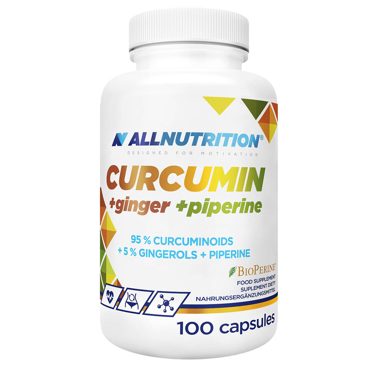 ekstrakt z kłącza ostryżu długiego curcuma longa, otoczka kapsułki (żelatyna), ekstrakt z korzenia imbiru lekarskiego zingiber officinale, skrobia, bioperine® ekstrakt z owoców pieprzu czarnego piper nigrum, substancje przeciwzbrylające: dwutlenek krzemu, sole magnezowe kwasów tłuszczowych.